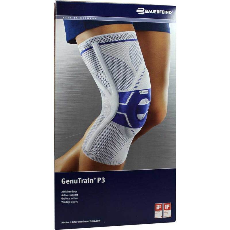 Die GenuTrain P3 (permanent patella protection) Bandage dient zur Entlastung, sowie einer verbesserten Führung der Kniescheibe. Neben einer Wechseldruckmassage, die durch die Pelotte (Massagepolster) auf die Gelenkweichteile wirkt, wird auch ein seitliches Abrutschen der Kniescheibe verhindert. Durch die Massage kommt es zu einer besseren Durchblutung in der Gelenkkapsel sowie einem besseren Lymphabfluss. Dadurch können Schwellungen und Blutergüsse schneller abheilen und der Schmerz kann gelindert werden.