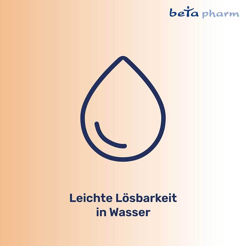 Calcium D3 beta® 1000 mg/880 I.E., Brausetabletten..Vorbeugung u. Behandl. v. Vitamin-D- u. Calcium-Mangelzuständen bei ält. Menschen. Vitamin-D- u. Calciumergänzung z. Unterstützung einer spezif. Therapie z. Vorbeugung u. Behandl. d. Osteoporose. Warnh.: Calcium D3 beta enthält Sojaöl. Partiell hydriertes Sojaöl kann sehr selten allerg. Reakt. hervorrufen. Calcium D3 beta enthält Sucrose (Zucker) u. Lactose. Bitte nehmen Sie Calcium D3 beta erst nach Rücksprache mit Ihrem Arzt ein, wenn Ihnen bekannt ist, dass Sie unter einer Zuckerunverträglichkeit leiden. Calcium D3 beta kann schädlich für d. Zähne sein. Calcium D3 beta enthält 96,2 mg Natrium (Hauptbestandteil v. Kochsalz/Speisesalz) pro Brausetablette. Dies entspricht 4,8 % d. für einen Erwachsenen empfohl. max. tägl. Natriumaufnahme mit d. Nahrung. Zu Risiken und Nebenwirkungen lesen Sie die Packungsbeilage und fragen Sie Ihren Arzt oder Apotheker. betapharm Arzneimittel GmbH, 86156 Augsburg