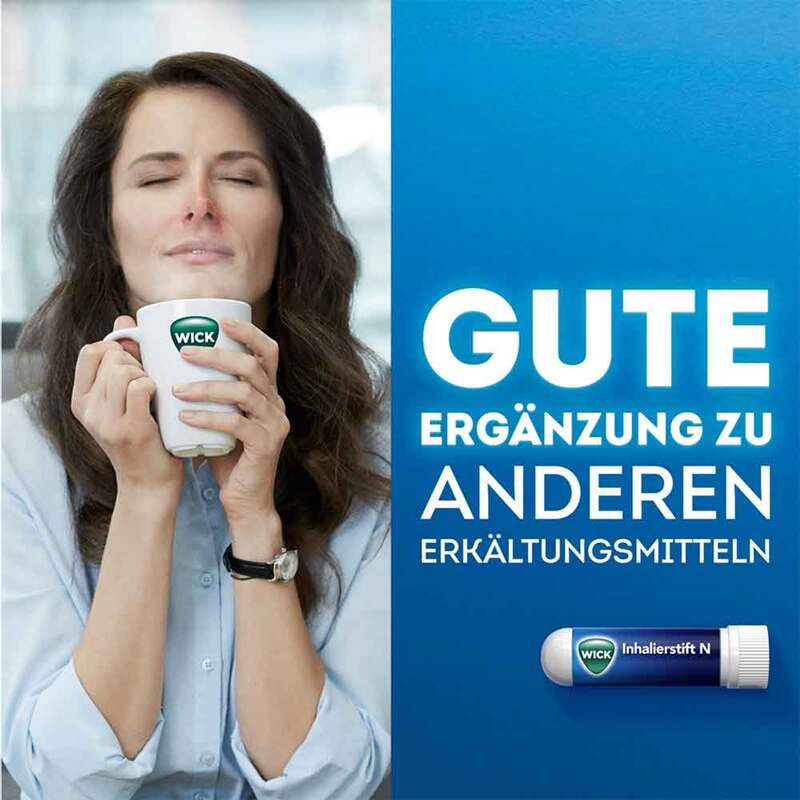 WICK Inhalierstift N Anwendungsgebiete: Zur Verbesserung des Befindens bei erkältungsbedingtem Schnupfen. Freiverkäuflich. Stand: März 2018. Zu Risiken und Nebenwirkungen lesen Sie die Packungsbeilage und fragen Sie Ihre Ärztin, Ihren Arzt oder in Ihrer Apotheke. WICK Pharma, Zweigniederlassung der Procter & Gamble GmbH, D-65823 Schwalbach