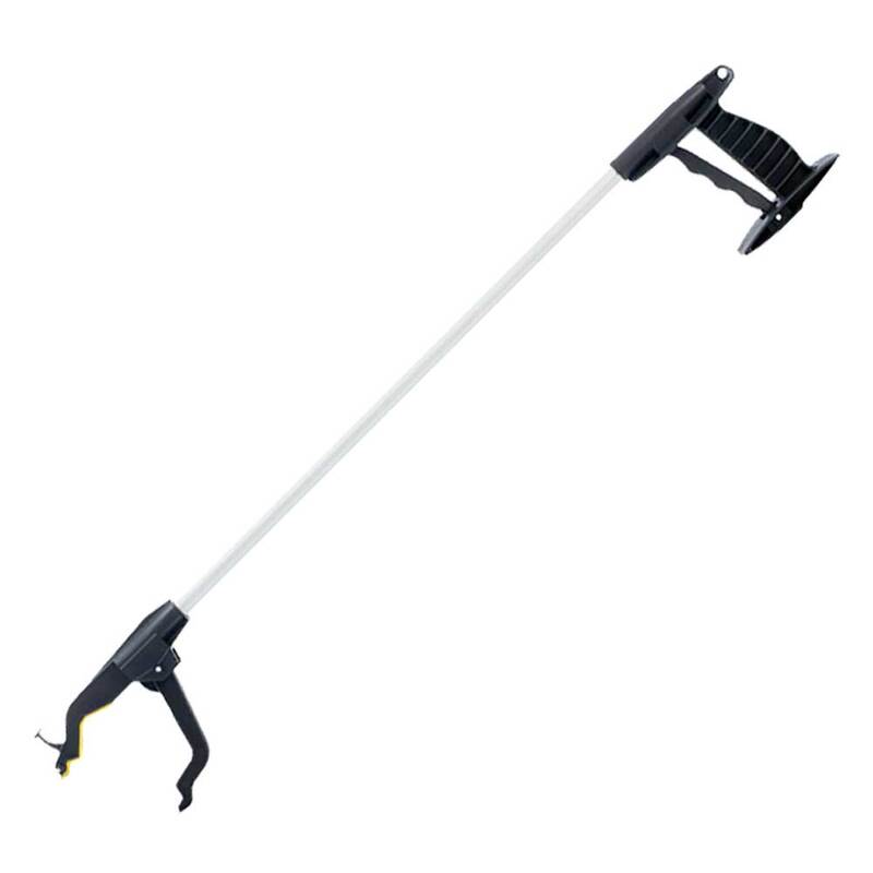 Unverzichtbarer Allroundhelfer, simpel in der Bedienung. Der Handgriff ist behinderungsgerecht gestaltet und der Hebel leicht mit den Fingern zu betätigen. Die Greifhilfe RFM® Deluxe ist für den allgemeinen Einsatz bestimmt und geeignet für Personen, die in Ihrer Beweglichkeit eingeschränkt sind. In der Spitze befindet sich ein Magnet, mit dem kleine metallische Gegenstände, wie z.B. Münzen, Nadeln oder Büroklammern aufgesammelt werden können. Ein Haken am vorderen Ende ermöglicht das Aufheben leichter Gegenstände, wie etwa einem Schlüsselbund. Der Kopf der Greifhilfe RFM® Deluxe ist drehbar, um die Anwendung zu erleichtern und um schmerzhafte Bewegungen beim Drehen des Handgelenks zu vermeiden.