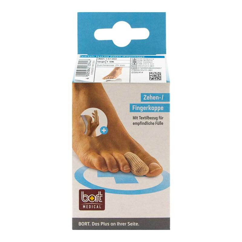 BORT PediSoft TexLine Zehen- und Fingerkappe in der Größe large. Mit Textilbezug für empfindliche Füße.