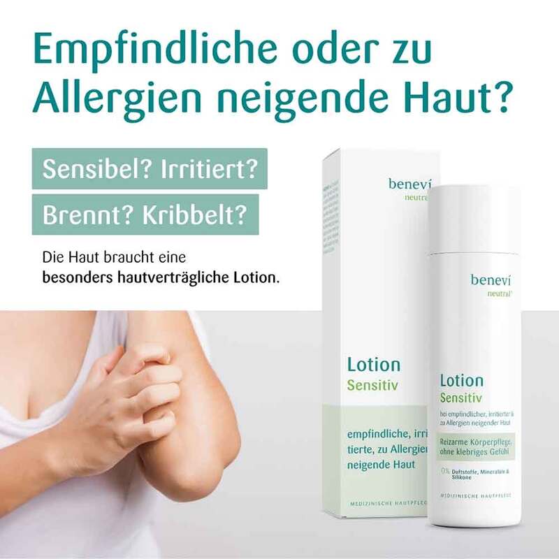 Die BENEVI Neutral Lotion kommt aus dem Hause BENEVI, die sich auf medizinische Hautpflege spezialisiert haben. Es handelt sich hier um eine Körperlotion, die für angegriffene, trockene und gereizte Haut geeignet ist. Die fettarme Emulsion, die hier angewendet wird, eignet sich ideal für die schonende Hautpflege. Die Inhaltsstoffe Bisabolol und Allantoin sind zwei Wirkstoffe, die sehr hautberuhigend wirken und Hautirritationen vorbeugen. Die BENEVI Neutral Lotion zieht sehr schnell ein ohne dass die Haut belastet wird und spannt. Die Lotion hinterlässt keinen Film und keine störenden Rückständen. Nach der Anwendung fühlt sich die Haut spürbar glatter und geschmeidiger an. Langfristig kann sich dieser positive Effekt als Dauererscheinung einstellen. Da es sich hier um ein sehr schonendes Produkt handelt, enthält die BENEVI Neutral Lotion keine Parfum- und auch keine Duftstoffe. Ebenso wenig kommen hier Konservierungsstoffe zum Einsatz, die der Haut schaden.