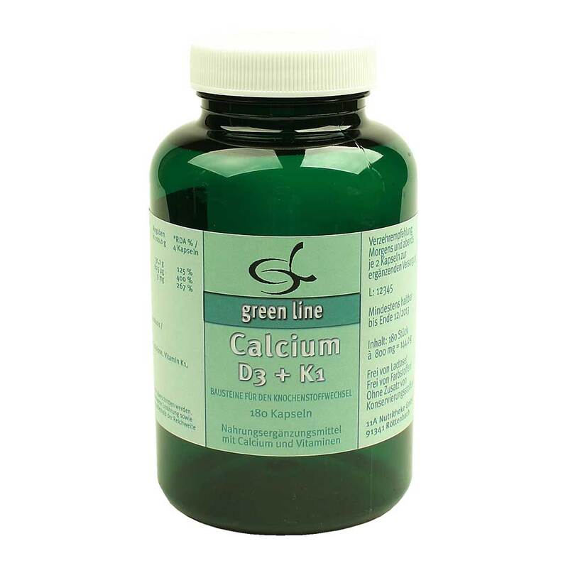Calcium ist der Hauptbestandteil des festen Knochenaufbaus und der Zähne. Vitamin D3 ist insbesondere für die Aufnahme von Calcium aus dem Darm unabdingbar, daneben ist es auch für die Einlagerung des Calciums in die Knochenmatrix wichtig Inhalt pro 4 Kapseln (Tagesempfehlung 2x2 Kps): 1000 mg Calcium, 800 IE Vitamin D3, 200 µ;g Vitamin K1 Frei von Lactose Frei von Farbstoffen Ohne Zusatz von Konservierungsstoffen