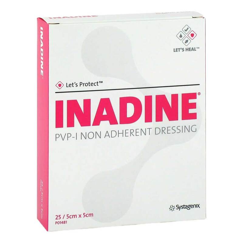 Für eine gute Wundversorgung muss ein Trauma der unverletzten Haut unbedingt vermieden werden. Färbt sich die Inadine-Wundauflage weiß, deutet dies auf eine abnehmende antiseptische Wirkung hin. In diesem Fall muss die Wundauflage gewechselt werden. In der Anfangsphase oder bei stark infizierten bzw. stark exsudierenden Wunden ist es unter Umständen notwendig, die Auflage bis zu zweimal täglich zu wechseln. Die Wundauflage lässt sich oft einfacher entfernen, wenn sie vorsichtig an sich diagonal gegenüberliegenden Ecken gezogen wird.