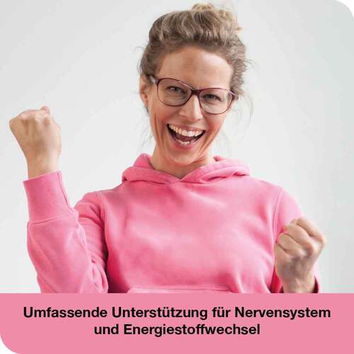 Zudem unterstützen einige B-Vitamine die Umwandlung von Glucose zum körpereigenen Energieträger ATP und tragen somit zu einem normalen Energiestoffwechsel* bei. Auch auf die Funktionen des Nerven- und Immunsystems* nehmen B-Vitamine Einfluss.
