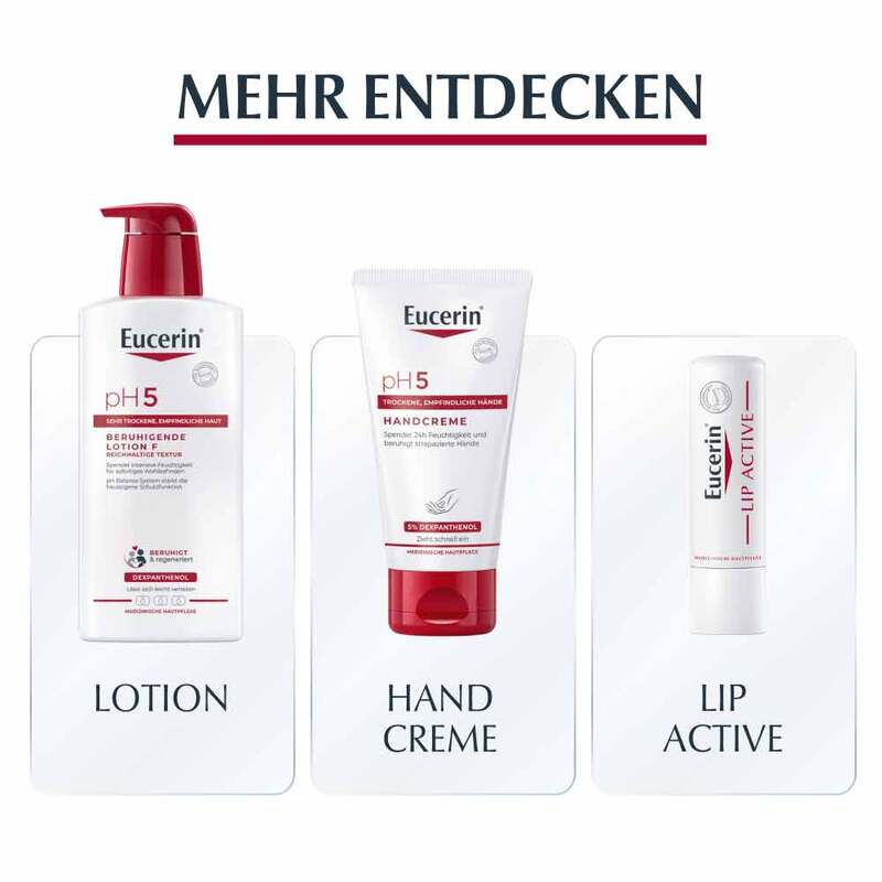Die Eucerin pH5 Waschlotion ist ein seifenfreies, mildes Reinigungsprodukt für den Körper. Die Waschlotion eignet sich besonders für die sanfte Reinigung von Gesicht und Körper sowie für empfindliche und trockene Haut, denn diese neigt dazu, besonders auf Umweltreize mit Spannungsgefühl, Hautrötungen und Hautirritationen zu reagieren. Daher braucht strapazierte Haut eine besonders milde Reinigung, die ihre physiologische Balance aufrechterhält.
