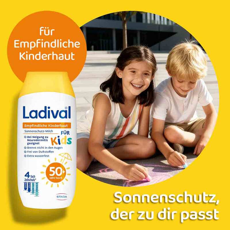 Kinderhaut ist besonders empfindlich gegenüber schädlichen UV-Strahlen und benötigt daher besonderen Schutz – vor allem, da Kinder viel Zeit im Freien verbringen. Ladival bietet hierfür die empfindliche Kinderhaut Sonnenschutz-Milch mit einem sehr hohen Lichtschutzfaktor von 50+ speziell formuliert für die empfindliche Haut von Kindern und Babys ab 6 Monaten.