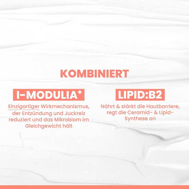Ein Cer-Omega-Lipidkomplex mit ungesättigten Omega-6-Fettsäuren stärkt die Hautbarriere, nährt die Haut und fördert ihre Regeneration. Das Herzstück von XeraCalm A.D ist der innovative Aktivstoff I-modulia, der in intensiver wissenschaftlicher Forschung aus der Mikroflora des Avene Thermalwassers (Aquaphilus dolomiae) entwickelt wurde. Er lindert den durch Trockenheit verursachten Juckreiz, beruhigt Rötungen und stimuliert die Immunabwehr der Haut, um bakteriellen Superinfektionen entgegenzuwirken.