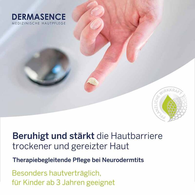 Bei trockener, juckender Haut wird ergänzend die lokale Anwendung von Dermasence Polaneth Lotion empfohlen.