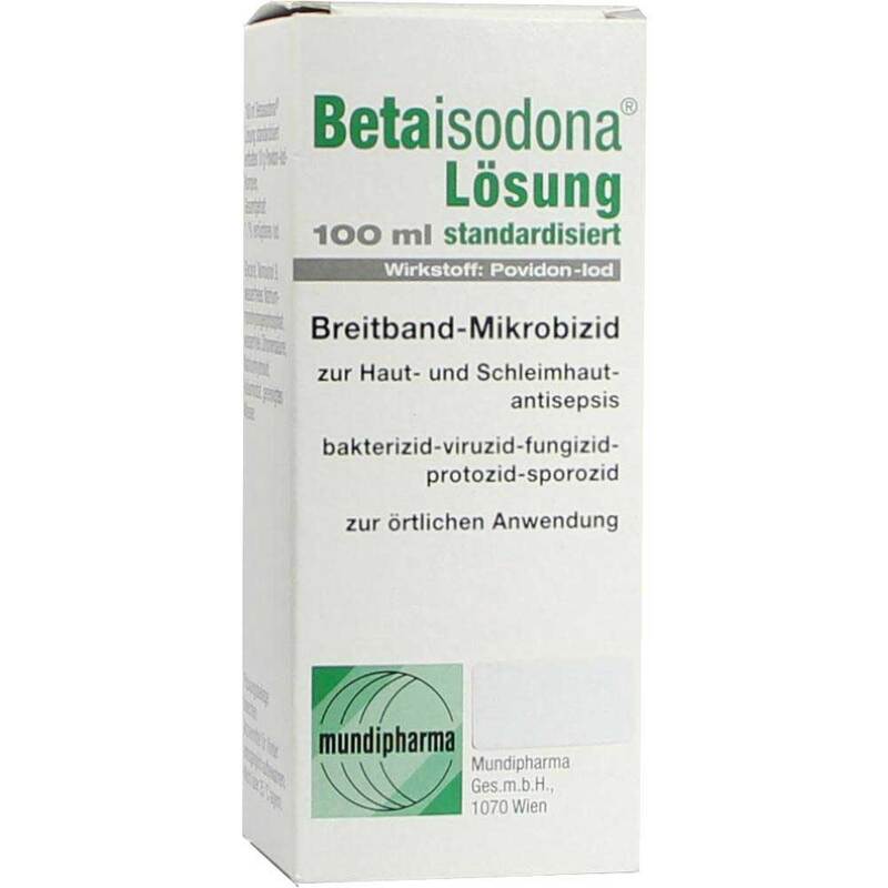 Betaisodona® Lösung, Wirkstoff: Povidon-Iod. Anwendungsgebiete: Wird einmalig angewendet zur Desinfektion der intakten äußeren Haut oder Antiseptik der Schleimhaut wie z.B. vor Operationen, Biopsien, Injektionen, Punktionen, Blutentnahmen und Blasenkatheterisierungen. Wird wiederholt, zeitlich begrenzt angewendet zur antiseptischen Wundbehandlung (z.B. Druckgeschwüre, Unterschenkelgeschwüre) bei Verbrennungen, infizierten und superinfizierten Hauterkrankungen sowie zur chirurgischen Händedesinfektion. Zu Risiken und Nebenwirkungen lesen Sie die Packungsbeilage und fragen Sie Ihre Ärztin, Ihren Arzt oder in Ihrer Apotheke. Mundipharma GmbH, 60549 Frankfurt am Main; Stand 09/2018