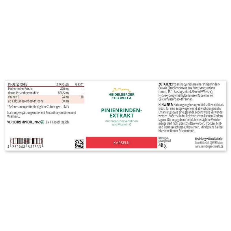 Proanthocyanidinreicher Pinienrindenextrakt, Hydroxypropylmethylcellulose (Kapselhülle), Calciumascorbat/-threonat (Ester-C®).
