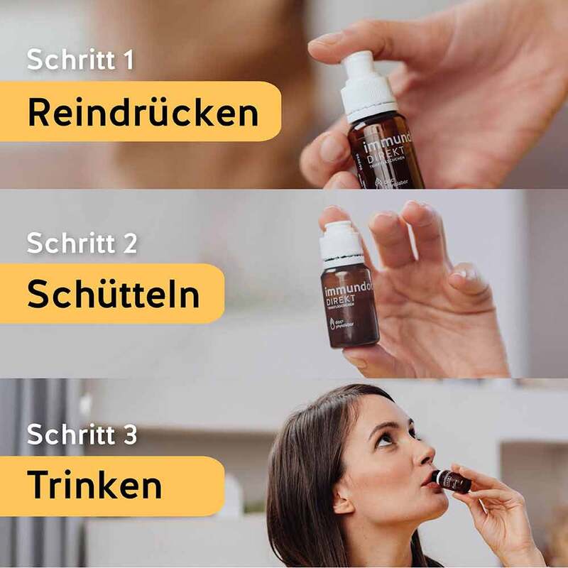 Zutaten im Trinkfläschchen: Wasser; Fruktose; Acerola-Extrakt (50% Vitamin C); Teufelskrallen Extrakt; Aroma: Orangengeschmack; Vitamin E (D-alpha-Tocopherol); Zinkgluconat; Verdickungsmittel: Xanthan Gum; Konservierungsstoffe: Kaliumsorbat, Natriumbenzoat; Natriumselenit.