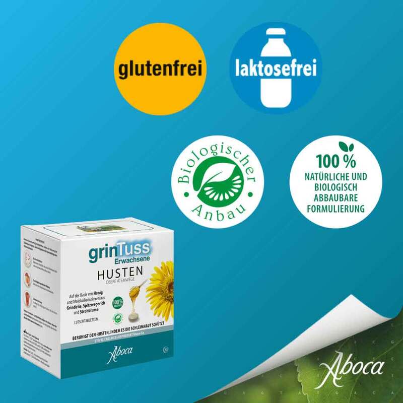 grinTuss Erwachsene Tabletten sind ein zu 100% natürliches, biologisches Produkt mit angenehmem Geschmack.