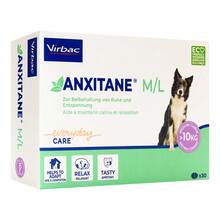 Anxitane® ist für Hunde mittlerer und großer Rassen. Die Tabletten enthalten L-Theanin, ein natürlicher Inhaltsstoff aus Grüntee-Extrakt. Das Produkt wurde speziell entwickelt, um Tieren in Situationen mit erhöhtem Umweltstress zu helfen.