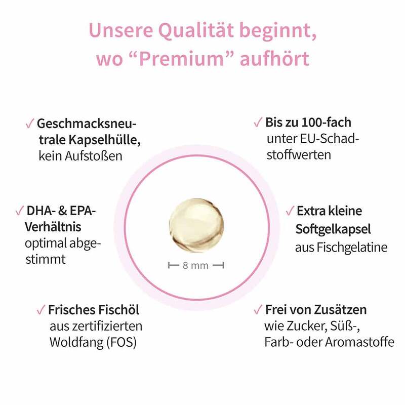 * Die Einnahme während einer Mahlzeit verbessert die Aufnahme / Bioverfügbarkeit der Omega-3-Fettsäuren im Körper.