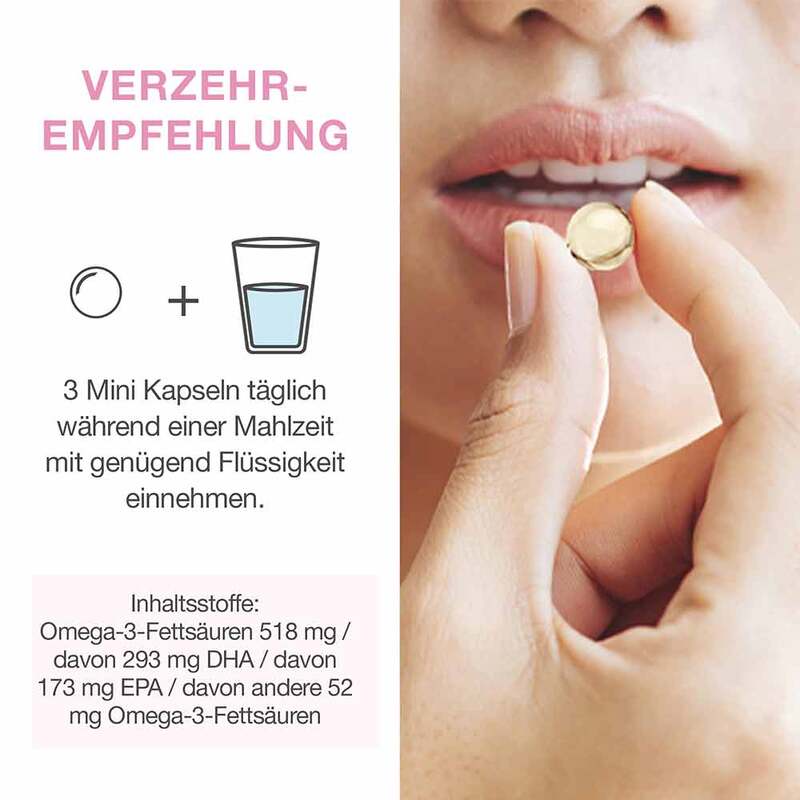 Verzehrempfehlung: 3 Mini-Kapseln täglich während einer Mahlzeit mit genügend Flüssigkeit einnehmen.*