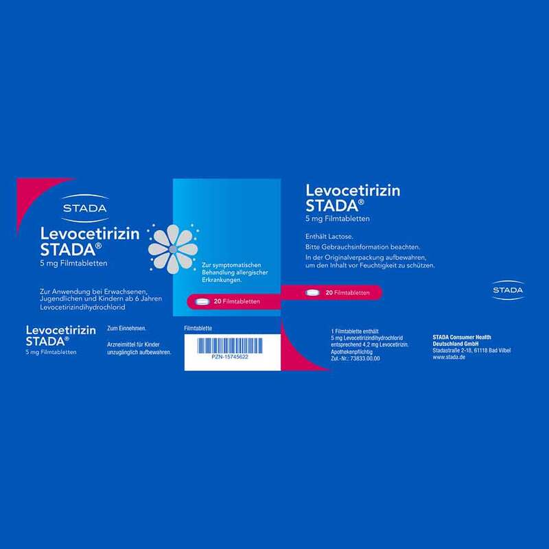 Pflichtangaben: Levocetirizin STADA® 5 mg Filmtabletten Zur Anwendung bei Erwachsenen, Jugendlichen und Kindern ab 6 Jahren. Wirkstoff: Levocetirizindihydrochlorid. Zur Behandlung von Symptomen bei allergischen Erkrankungen wie: Heuschnupfen, ganzjährigem allergischen Schnupfen, chronischer Nesselsucht. Enthält Lactose. Zu Risiken und lesen Sie bitte die Packungsbeilage und fragen Sie Ihren Arzt oder Apotheker. STADA Consumer Health Deutschland GmbH, Stadastraße 2-18, 61118 Bad Vilbel Stand: Juli 2020