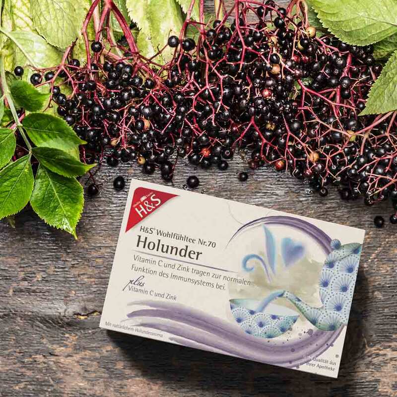 - Früchte- Kräutertee mit natürlichem Aroma, Vitamin C, Zink* und Holundergeschmack