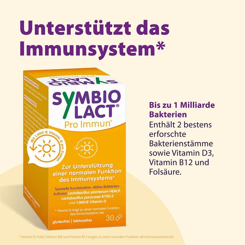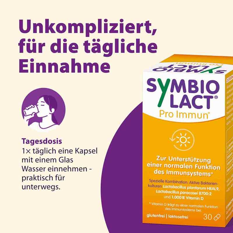 Maisstärke, Überzugsmittel: Hydroxypropylmethylcellulose, gefriergetrocknete Milchsäurebakterien (Lactobacillus plantarum HEAL9, Lactobacillus paracasei 8700:2), Maltodextrin, Vitamin D3 (Cholecalciferol), Trennmittel: Magnesiumsalze der Speisefettsäuren, Folsäure (Pteroylmonoglutaminsäure), Vitamin B12 (Cyanocobalamin)