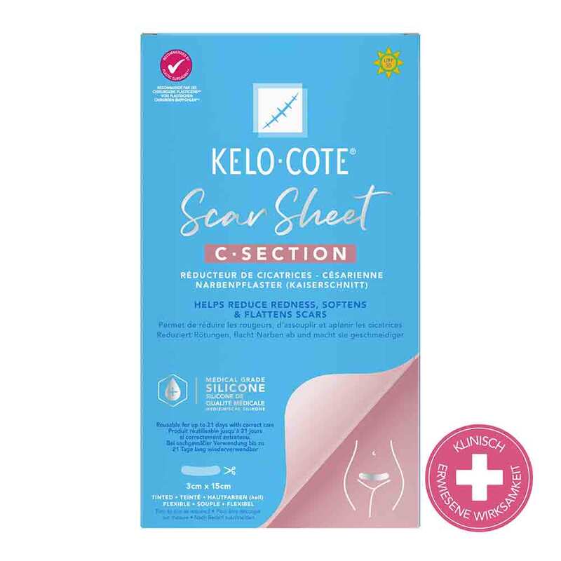 KELO-COTE® Silikon-Narbenpflaster Kaiserschnitt sind speziell für Kaiserschnittnarben entwickelt, um das Erscheinungsbild von erhabenen Narben zu reduzieren.