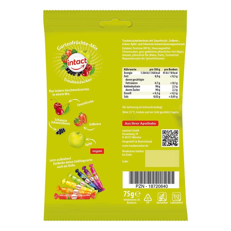 Intact Traubenzucker Beutel Gartenfrüchte-Mix, 75 g
