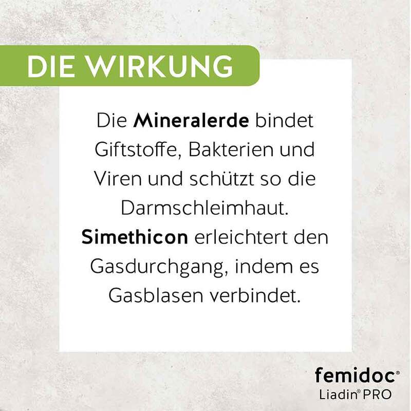 - femidocLiadin PRO nicht bei Überempfindlichkeit oder Allergie gegen einen der Inhaltsstoffe einnehmen;