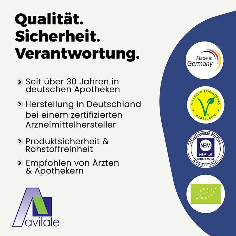Nahrungsergänzungsmittel sind kein Ersatz für eine ausgewogene und abwechslungsreiche Ernährung und eine gesunde Lebensweise. Die angegebene empfohlene tägliche Verzehrmenge darf nicht überschritten werden.