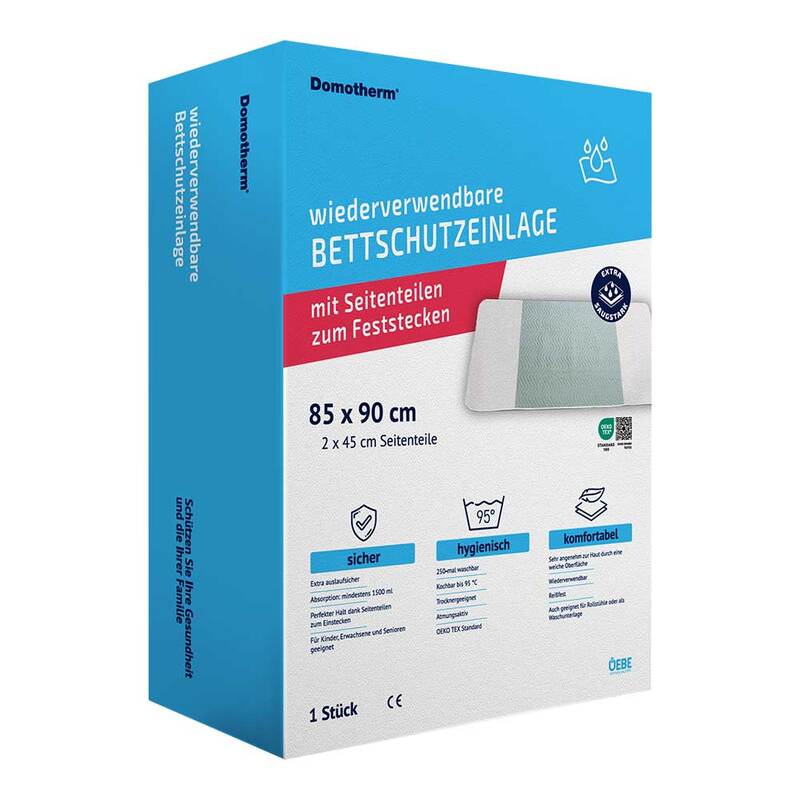Die Domotherm Bettschutzeinlagen werden bei Inkontinenz eingesetzt. Sie besitzen Flügel zur besseren Haftung und sind wiederverwendbar.