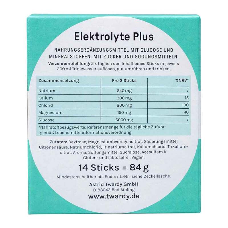 Elektrolyte mit Magnesium, Kalium, Natrium, Chlorid und Glucose zur Unterstützung des Elektrolytgleichgewichts, der normalen Muskelfunktion und des Wasserhaushalts – nach Sport, intensiven Aktivitäten oder langen Nächten, vegan, gluten- und laktosefrei.