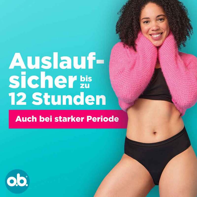 Beim o.b. Periodenslip für starke Periode in Größe XL / XXL handelt es sich um wiederverwendbare Menstruationsunterwäsche für bis zu 12h Auslaufschutz, die besonders saugfähig und bequem ist.