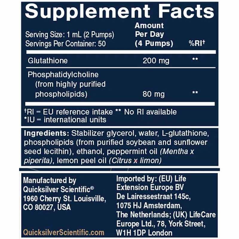 Stabilisator (Glycerin), Wasser, L-Glutathion, Phospholipide (Soja- und Sonnenblumenlecithine), Ethanol, Pfefferminzöl (Mentha x piperita), Zitronenschalenöl (Citrus limon).