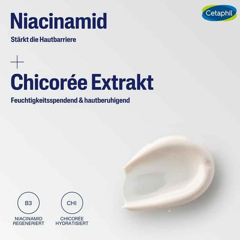 Die Feuchtigkeitspflege mit Lichtschutzfaktor 30 wurde speziell für die Bedürfnisse trockener, empfindlicher Haut entwickelt. Mit ihrem Komplex aus Niacinamid & Chicoree-Extrakt sorgt sie für eine gestärkte Hautbarriere, u.a. durch eine Aktivierung des Vitamin-D- Rezeptors der Haut. Die Haut kann besser Feuchtigkeit speichern und ist widerstandsfähiger gegenüber äußeren Einflüssen.