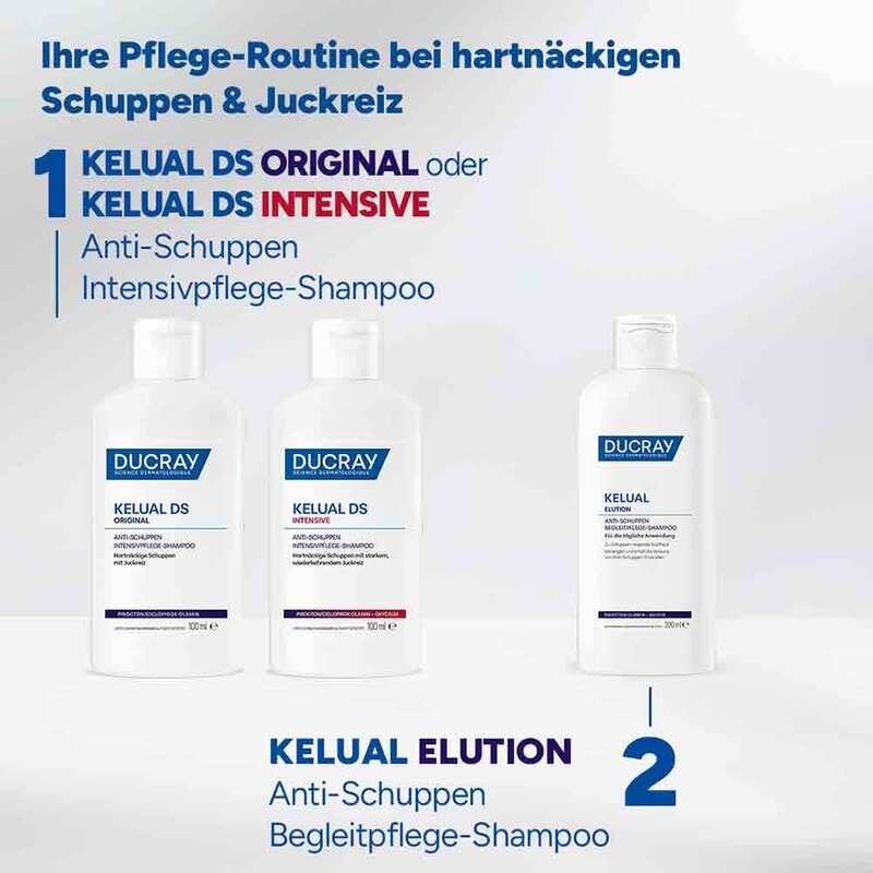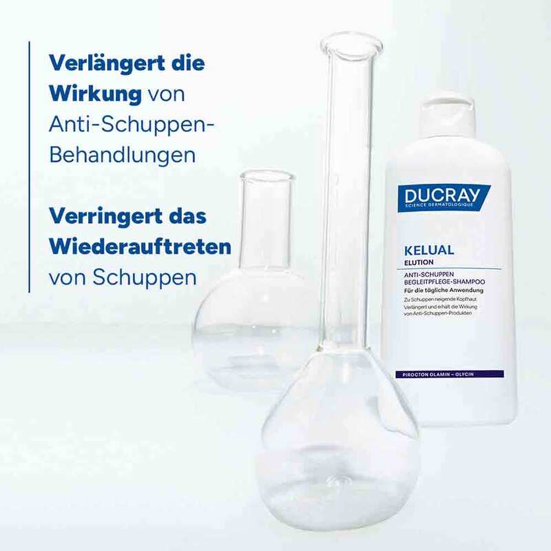 KELUAL ELUTION Anti-Schuppen Begleitpflege-Shampoo von Ducray ist eine effektive Begleitpflege zur täglichen Anwendung nach oder im Wechsel mit Anti-Schuppen-Behandlungen wie KELUAL DS (bei seborrhoischem Ekzem oder Kleienpilzflechte) oder KERTYOL P.S.O. (bei Psoriasis).