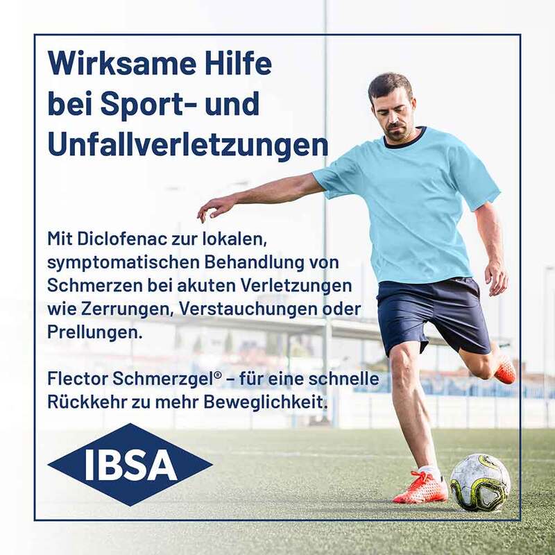 Flector® Schmerzgel wird angewendet: Für Erwachsene und Jugendliche ab 14 Jahren. Zur lokalen, symptomatischen Behandlung von Schmerzen bei akuten Zerrungen, Verstauchungen oder Prellungen infolge eines stumpfen Traumas, z. B. Sport- und Unfallverletzungen. Für Jugendliche ab 14 Jahren ist das Arzneimittel zur Kurzzeitbehandlung bestimmt.