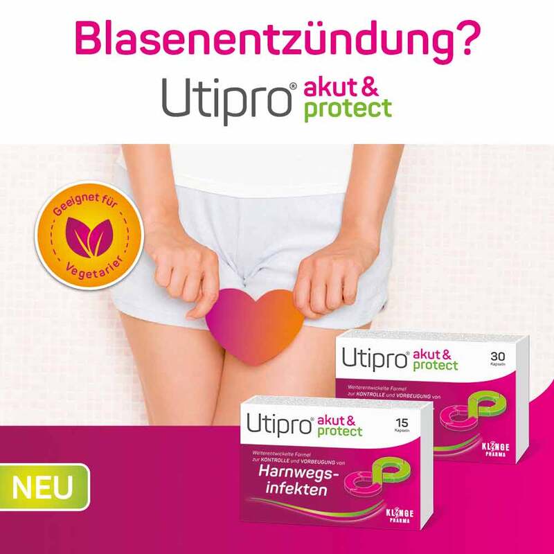 - Mit Utipro® akut & protect können Frauen unkomplizierte Blasenentzündungen akut und vorbeugend in den Griff bekommen.