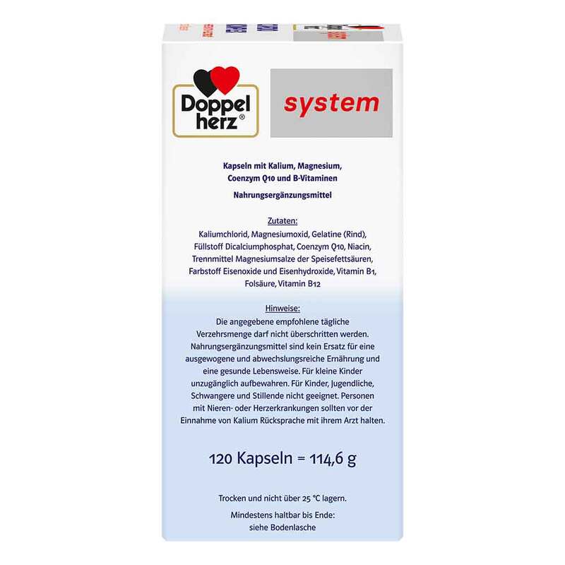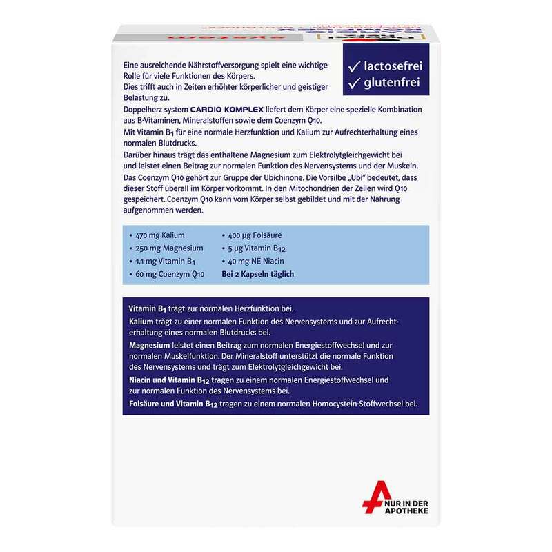 Eine ausreichende Nährstoffversorgung spielt eine wichtige Rolle für viele Funktionen des Körpers. Doppelherz system Cardio Komplex liefert dem Körper eine spezielle Kombination aus B-Vitaminen, Mineralstoffen sowie dem Coenzym Q10. Mit Vitamin B1 für eine normale Herzfunktion und Kalium zur Aufrechterhaltung eines normalen Blutdrucks.