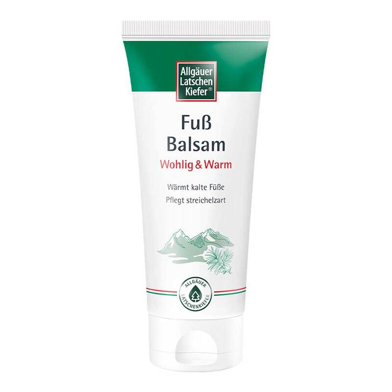 Allgäuer Latschenkiefer wohlig & warm Fuß-Balsam enthält Original Allgäuer Latschenkiefernöl, Rosmarinöl und wertvolle Pflanzenextrakte aus Enzian und Ingwer. Ihre Füße werden wohlig warm und streichelzart.
