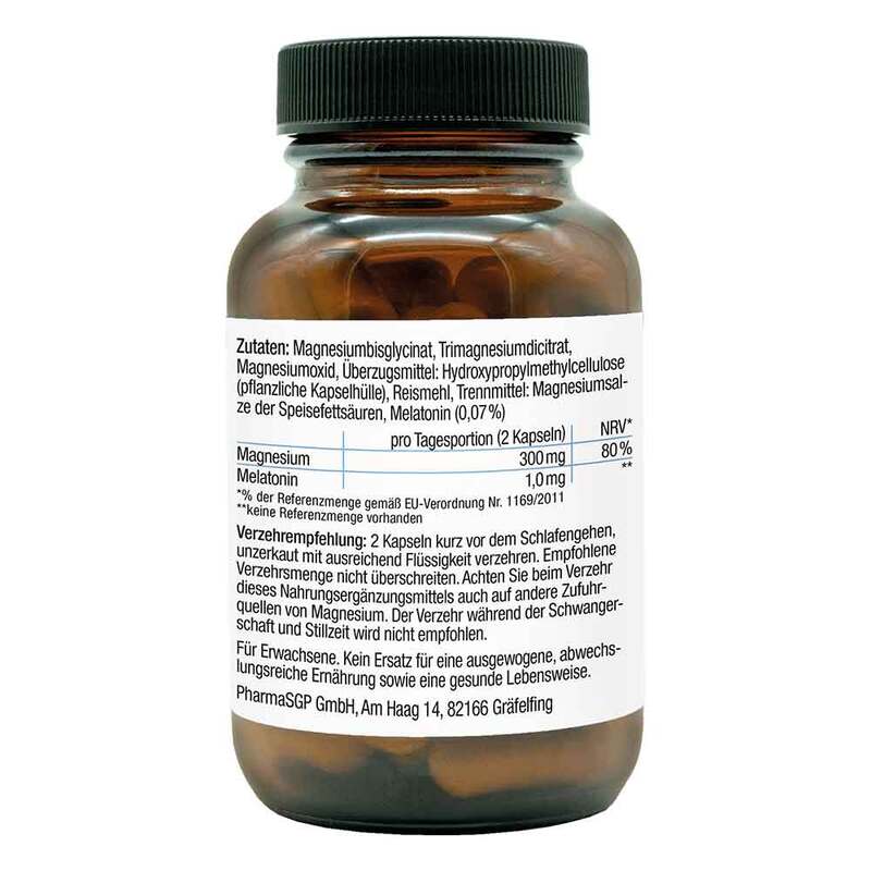 *Magnesium trägt zur Verringerung von Müdigkeit und Ermüdung bei. Magnesium trägt zu einer normalen Muskelfunktion bei. Magnesium trägt zu einer normalen Funktion des Nervensystems bei. Melatonin trägt dazu bei, die Einschlafzeit zu verkürzen. Die positive Wirkung stellt sich ein, wenn kurz vor dem Schlafengehen 1 mg Melatonin aufgenommen wird.
