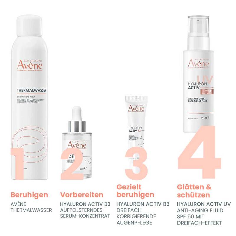 3. Tagespflege mit Dreifach-Effekt: Anschließend das Avène Hyaluron Activ UV Anti-Aging Fluid SPF 50 auf Gesicht, Hals und Dekolleté auftragen.