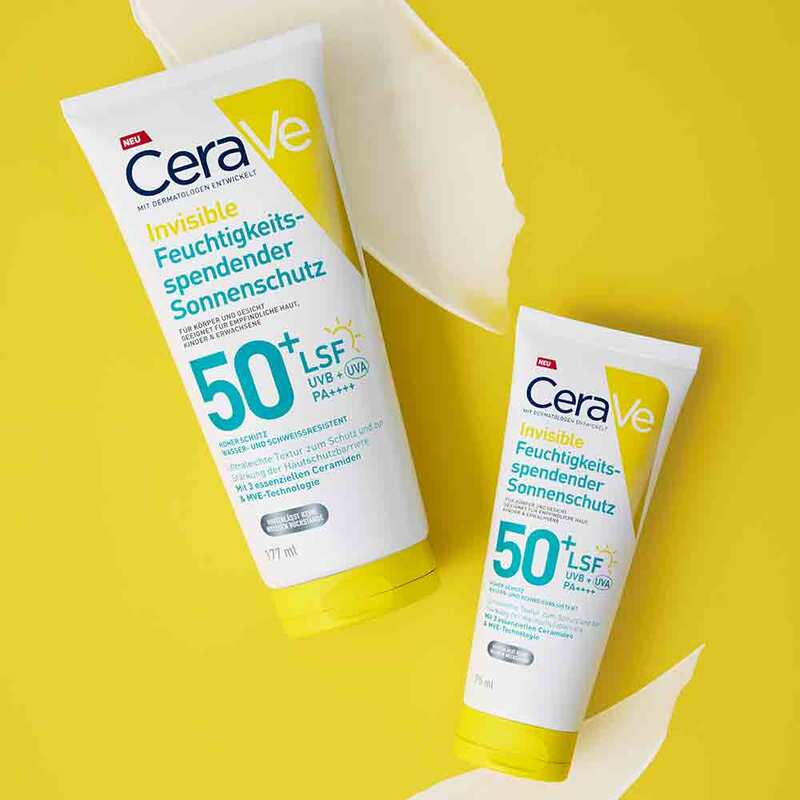 CeraVe Invisible Feuchtigkeitsspendender Sonnenschutz bietet einen sehr hohen UVA- und UVB-Schutz in einer leichten, feuchtigkeitsspendenden Formel