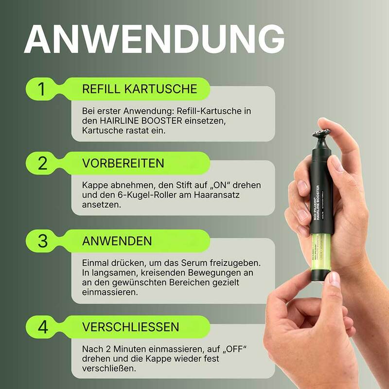 Durch das präzise Auftragen mit dem Roller-Applikator kann das Serum kontrolliert auf der Kopfhaut verteilt werden. Das nachfüllbare, tragbare Design ermöglicht eine unkomplizierte Anwendung im Rahmen der täglichen Pflegeroutine.
