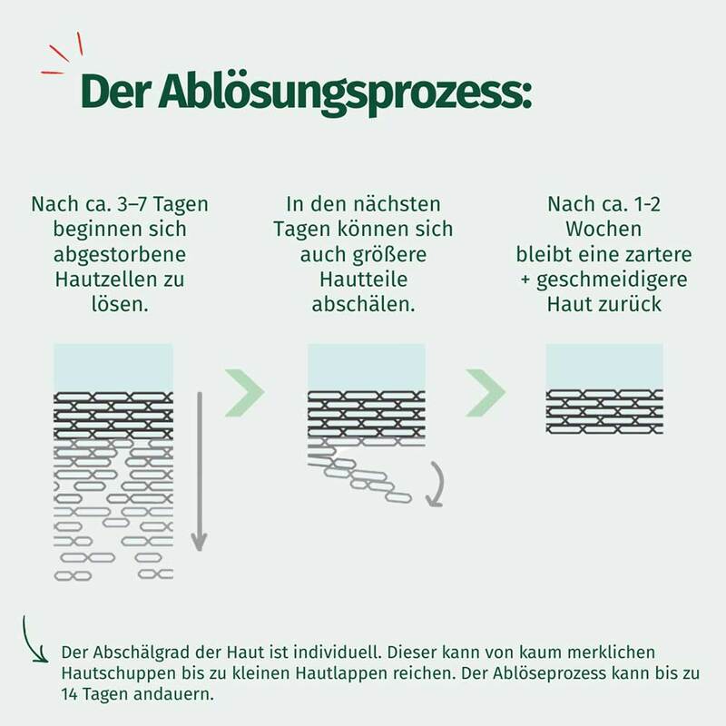 Nur zur äußerlichen Anwendung im Bereich der Füße. Nach der Anwendung die Hände gründlich waschen. Nicht auf verletzter, gereizter, offener oder überempfindlicher Haut anwenden. Fußpartien ohne Hornhaut können empfindlich reagieren. Kontakt mit den Augen und Schleimhäuten vermeiden. Bei Diabetes oder anderen Stoffwechselerkrankungen sowie bei Hauterkran?kungen wie z. B. Neurodermitis, Ausschlägen oder Ekzemen darf eine Anwendung nur nach Rücksprache mit dem Arzt erfolgen. In der Schwangerschaft und Stillzeit vor Gebrauch einen Arzt fragen. Bei bekannter Unverträglichkeit oder Überempfindlichkeit gegenüber einem der Inhaltsstoffe darf das Produkt nicht verwendet werden. Brechen Sie die Anwendung ab, wenn es während der Verwendung des Produktes zu Rötungen, Jucken oder Brennen der Haut kommt; waschen Sie vorsichtig mit lauwarmem Wasser die Produktreste ab. Nicht häufiger als einmal pro Monat anwenden. Während des Schälprozesses Sonnenein?strahlung und UV-Licht vermeiden. Nicht für Kinder verwenden. Für Kinder unzugänglich aufbewahren. Der Abschälgrad der Hornhaut ist individuell. Dieser kann von kaum merklichen Hautschuppen bis zu kleinen Hautlappen reichen. Sich ablösende Hornhaut nicht gewaltsam entfernen. Der Ablöseprozess kann bis zu 14 Tage andauern. Nicht mit empfindlichen Materialen/ Textilien (auch Fußböden) in Kontakt bringen. Socken nur zur Anwendung des Produkts bestimmt; nur einmal anwenden; nach Gebrauch entsorgen. Die Socken können vor allem auf glatten Flächen rutschig sein, so dass beim Umherlaufen die Gefahr besteht zu stürzen oder auszurutschen.