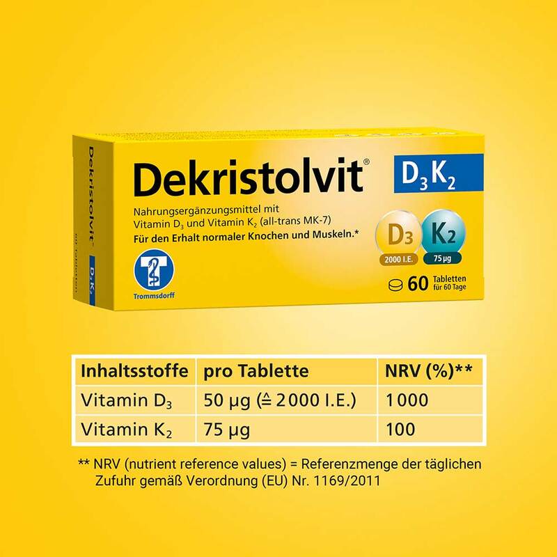 - Mit 2.000 I.E. Vitamin D und 75 µg Vitamin K pro Tablette